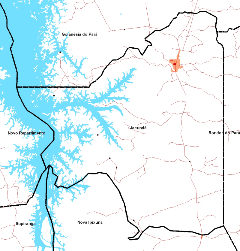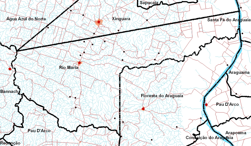 Mapa planimétrico feito com as bases do SIPAM/IBGE e Carta-Imagem feita com imagem Landsat de 2007, ambos em escala 1:450.000.