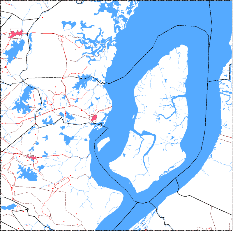 Mapa planimétrico feito com as bases do SIPAM/IBGE e Carta-Imagem feita com imagem Landsat de 2007, ambos em escala 1:450.000.