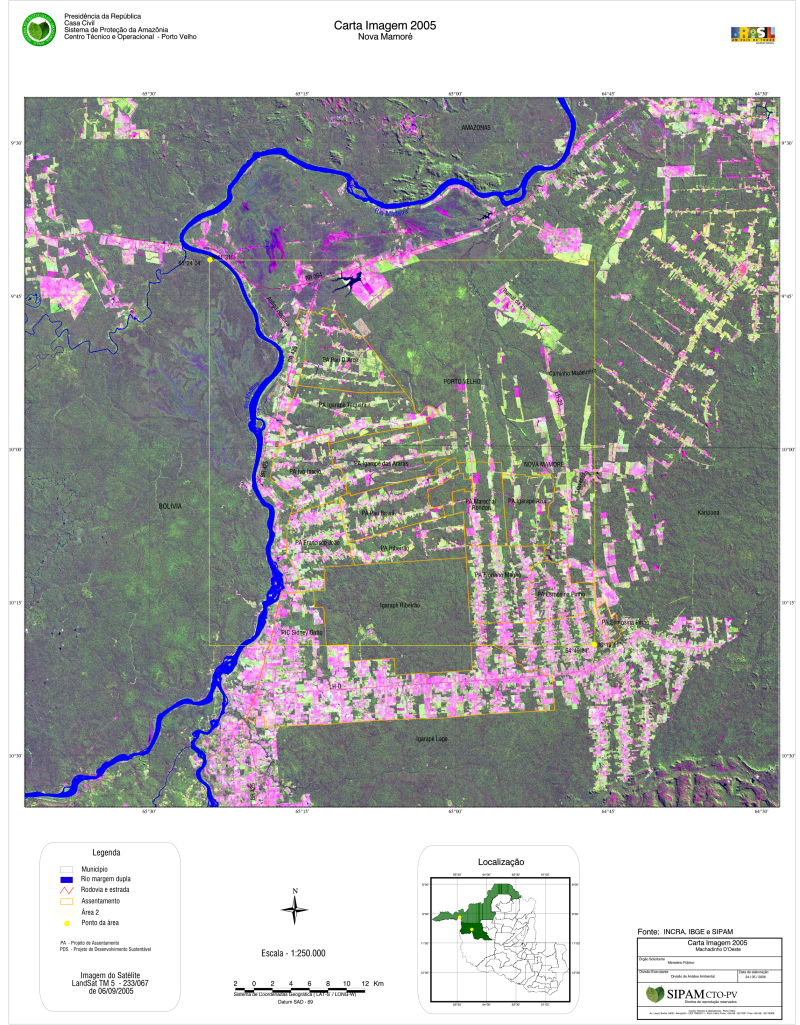 Cartas Imagens do Municipio de Nova Mamoré, Estado de Rondonia, elaborada a partir do mosaico de Imagem do Satélite LandSat TM 5, anos 2005 e 2006.