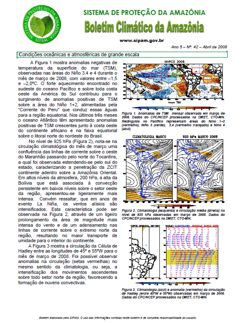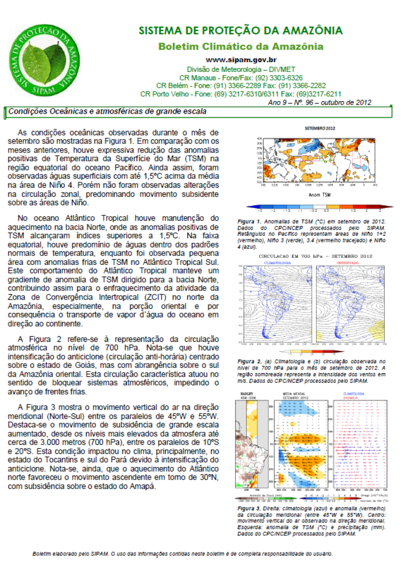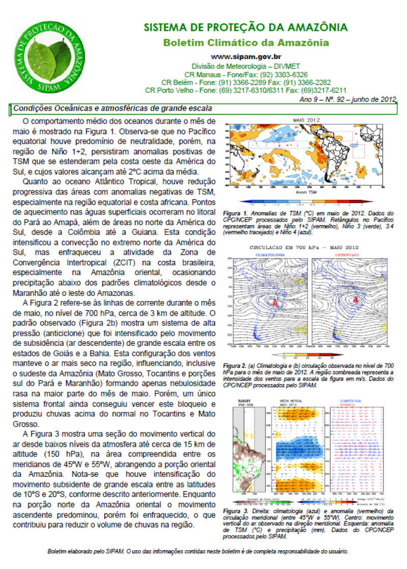 Previsão Climática (para os próximos 3 meses) elaborada mensalmente pelo segmento de meteorologia do SIPAM.