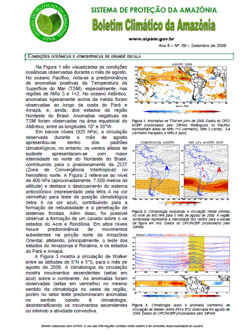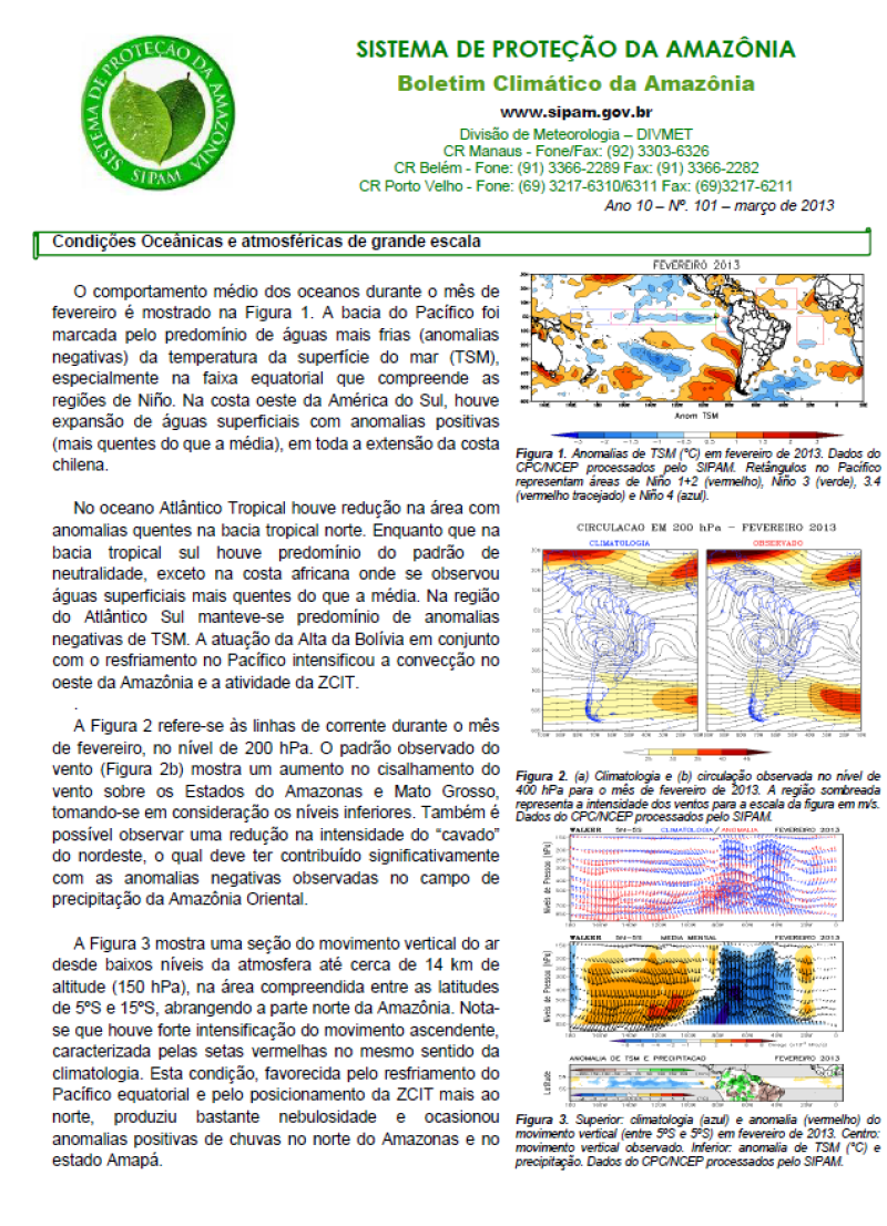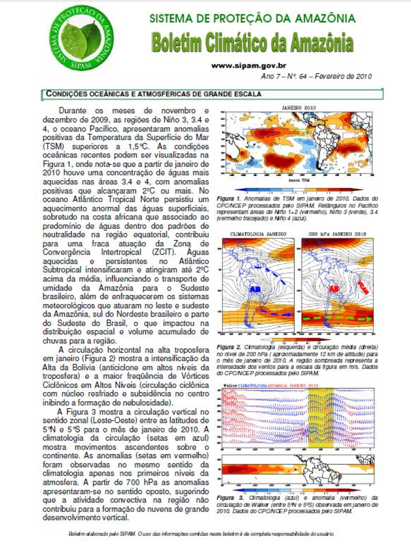 Previsão Climática (para os próximos 3 meses) elaborada mensalmente pelo segmento de meteorologia do SIPAM.